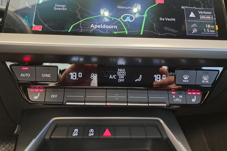 Een goede veiligheidsvoorziening is de stuurbediening voor belangrijke functies. Het audiosysteem biedt glasheldere geluidskwaliteit dankzij dab-ontvangst. Zoals van een eigentijdse auto verwacht mag worden, is deze Audi A3 Limousine voorzien van een draadloze oplaadmogelijkheid voor telefoons. De electronic climate control zorgt voor een behaaglijk klimaat in de auto. Het luxeniveau in deze Audi is niet alleen gericht op comfort, maar ook op uw veiligheid. Tal van sensoren helpen u om de omgeving in de gaten te houden. De automatisch inschakelbare verlichting zorgt dat automatisch de verlichting wordt ingeschakeld als het donker wordt, wat bijvoorbeeld in tunnels erg handig is. De regensensor zet de ruitenwissers aan zonder dat u eraan hoeft te denken. En dan zijn er ook nog parkeersensoren achter die u helpen om veilig en schadevrij in te parkeren. De cruise control levert een mooie, gelijkmatige koers. Dat rijdt prettig. U bent in deze Audi ook voorzien van sportstuur met schakelpaddels en centrale deurvergrendeling met afstandsbediening.