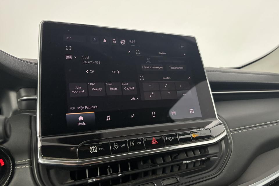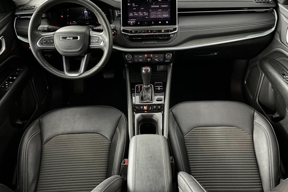 De automatische veiligheidssystemen in deze Jeep fungeren als een extra paar ogen. En dat niet alleen, ze kunnen ook actief ingrijpen, om zo jou en jouw passagiers te beschermen. Deze Jeep Compass is ook behulpzaam als het gaat om een rechte koers. Het Lane-keeping systeem signaleert en corrigeert als je onbedoeld de rijstrooklijnen dreigt te overschrijden. De sensor van het forward collision warning-systeem registreert permanent de afstand tot voorliggers en grijpt in als een botsing dreigt. Het systeem voor vermoeidheidsherkenning neemt het waar als jouw concentratie verslapt en geeft je dan een waarschuwing. Je bent mede dankzij hill hold functie, autonoom remsysteem en bandenspanningcontrolesysteem steeds veilig onderweg.