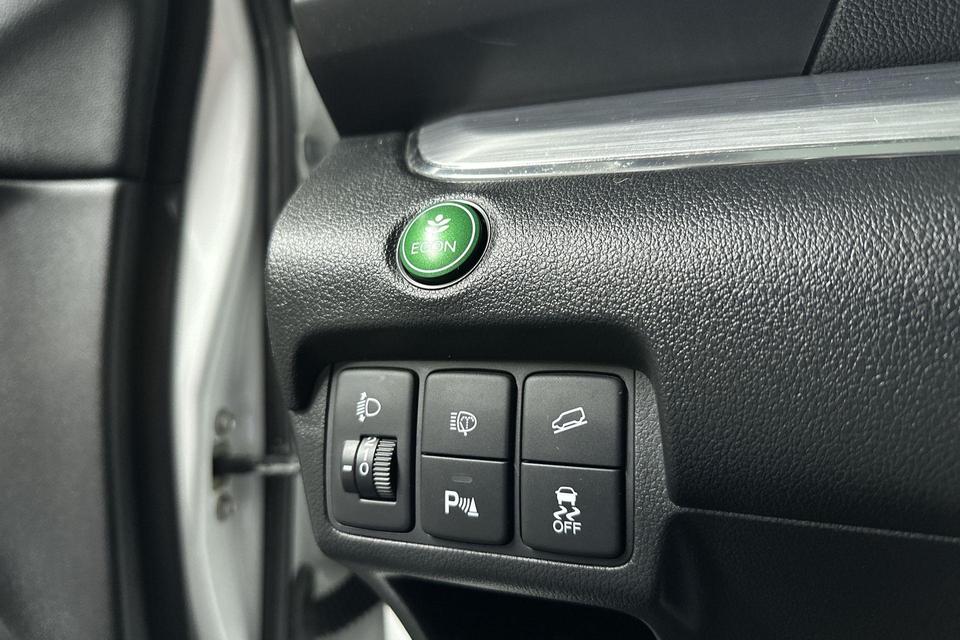 Bij het inparkeren laat de achteruitrijcamera precies zien hoeveel meter... decimeter... centimeter ruimte er nog is! Als u regelmatig met een aanhanger of een fietsendrager op pad bent, is de afneembare trekhaak een praktische extra. Bij de luxe van deze auto hoort ook automatische airconditioning. Achter het stuur van deze Honda bent u niet alleen. De auto kijkt als het ware met u mee tijdens de rit. De regensensor schakelt de ruitenwissers in als het nodig is en de automatisch inschakelbare verlichting doet de lichten voor u aan. U bedient de cruise control eenvoudig zonder uw handen van het stuur te halen. Extra opties op deze auto zijn: navigatiesysteem, sportstuur met schakelpaddels, DAB ontvangst, automatisch dimmende binnenspiegel, centrale deurvergrendeling met afstandsbediening en bagage afdekhoes.