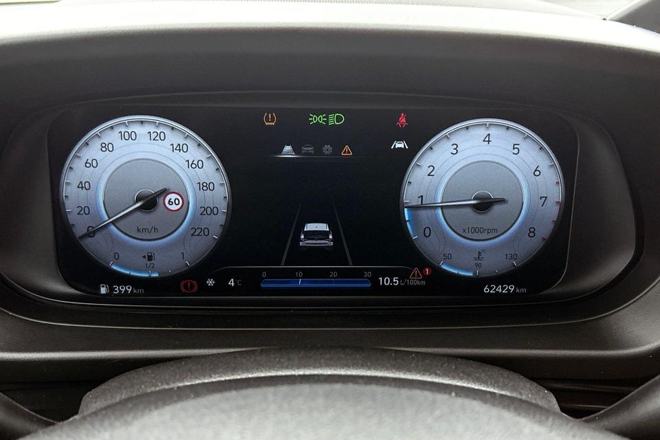 Het digitale dashboard is een perfecte bijrijder. Alles benodigde informatie is permanent zichtbaar of opvraagbaar. Niets achter deze auto blijft verborgen door de achteruitrijcamera. Een veilig gevoel! Gemak dient de mens. Dankzij de spraaksturing bedient u de belangrijkste functie met uw stem. In één oogopslag weet u de complete systeemstatus van deze auto. Dankzij Connected Services. Nooit meer de weg kwijt: daarvoor zorgt het onboard navigatiesysteem. De uitrusting van deze Hyundai is met DAB ontvangst, cruise control, airconditioning, automatisch dimmende binnenspiegel, isofix-aansluiting en centrale deurvergrendeling met afstandsbediening behoorlijk compleet.