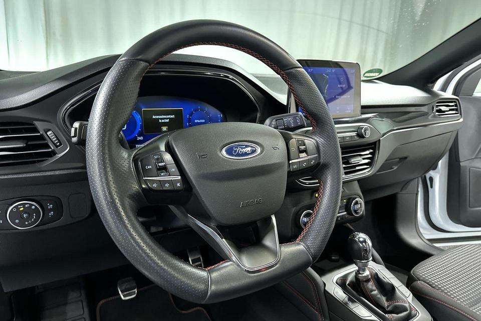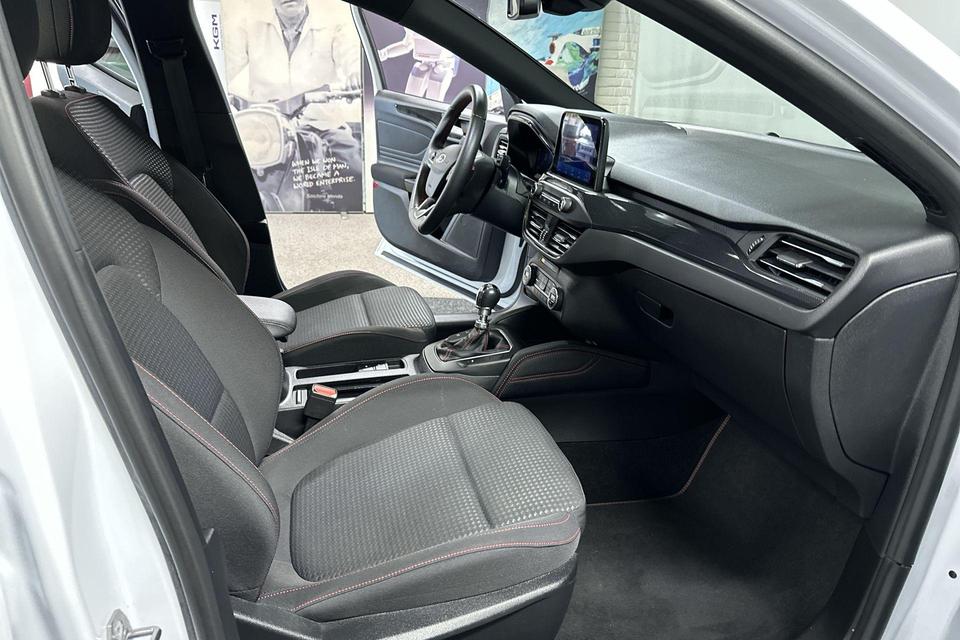 Zoals u mag verwachten van deze Ford Focus is hij uitgerust met een reeks aan actieve veiligheidssystemen. Deze Ford Focus is ook behulpzaam als het gaat om een rechte koers. Het Lane-keeping systeem signaleert en corrigeert als u onbedoeld de rijstrooklijnen dreigt te overschrijden. Het forward collision warning-systeem is constant alert en detecteert via sensor de afstand tot voorliggers. Wordt die te klein, dan volgt een automatische waarschuwing. U bent mede dankzij hill hold functie, brake assist en bandenspanningcontrolesysteem steeds veilig onderweg.