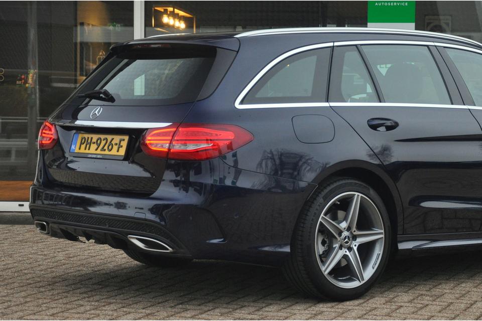 Fabrikant: Autobedrijf Lokhorst-Zoet B.V. Zuiderzeestraatweg Oost 17 8081LA ELBURG, NL 0525681438 http://www.lokhorstzoet.nl verkoop@lokhorstzoet.nlZeer nette en goed uitgevoerde Mercedes-Benz Estate C180 in het prachtige donkerblauwe Cavansite Blue Metallic en (vrijwel) onbeschadigde 18 inch AMG-Line wielen. Het betreft hier een origineel Nederlands geleverde auto met slechts 49.000 km op de teller. De laatste en enige particuliere eigenaar heeft de auto sinds 2018 in bezit gehad.