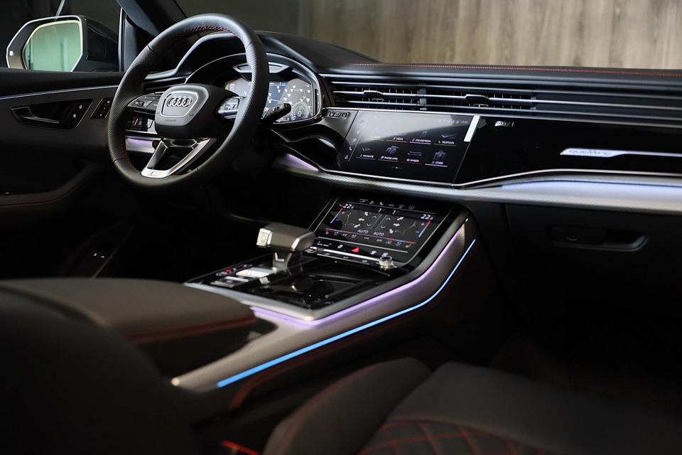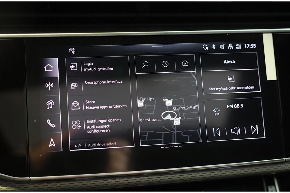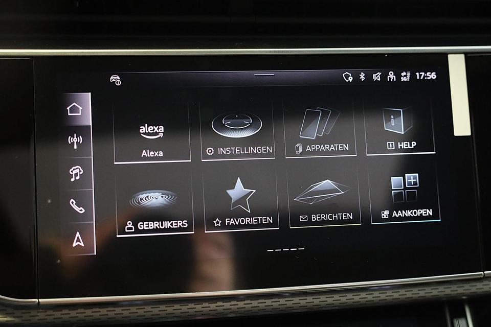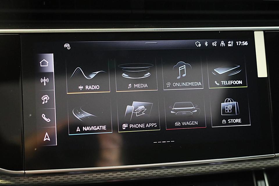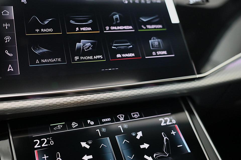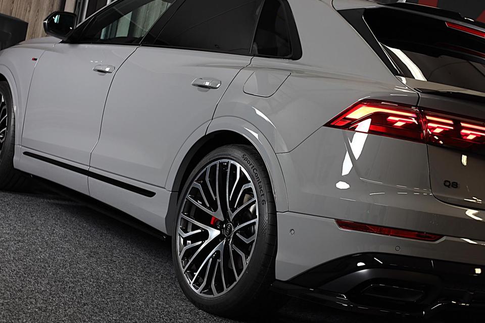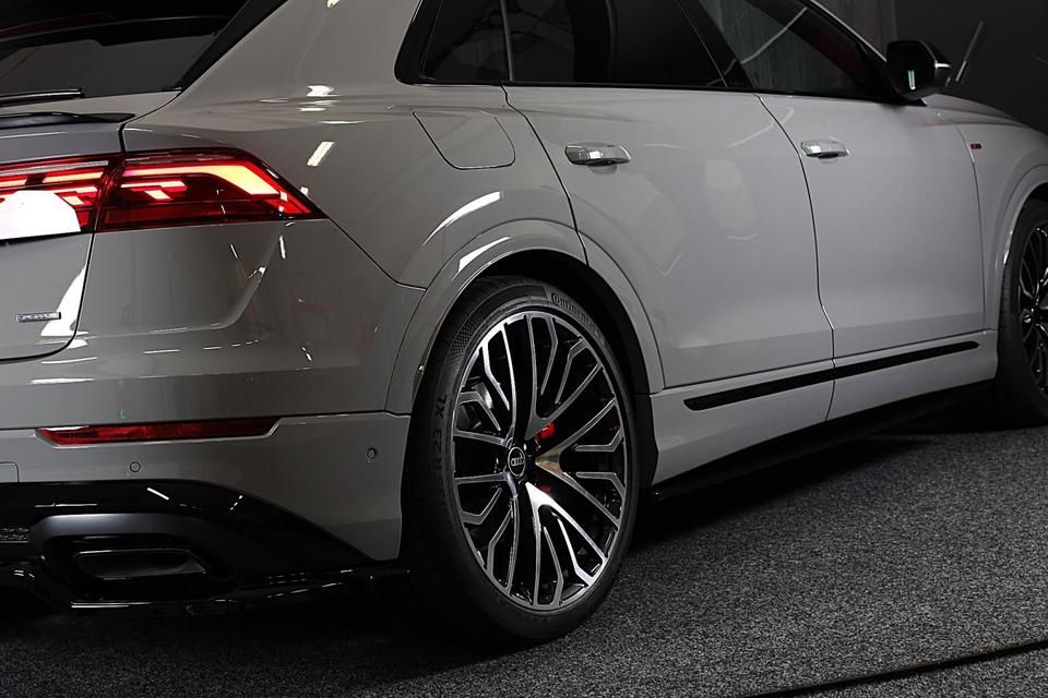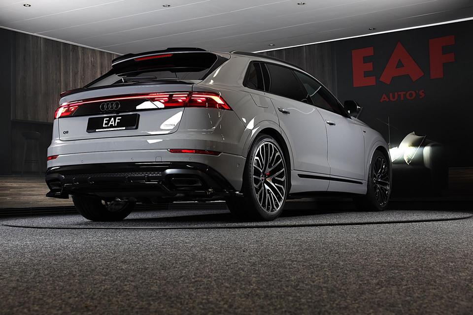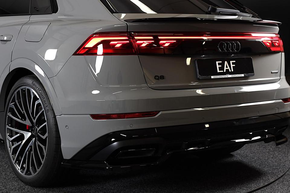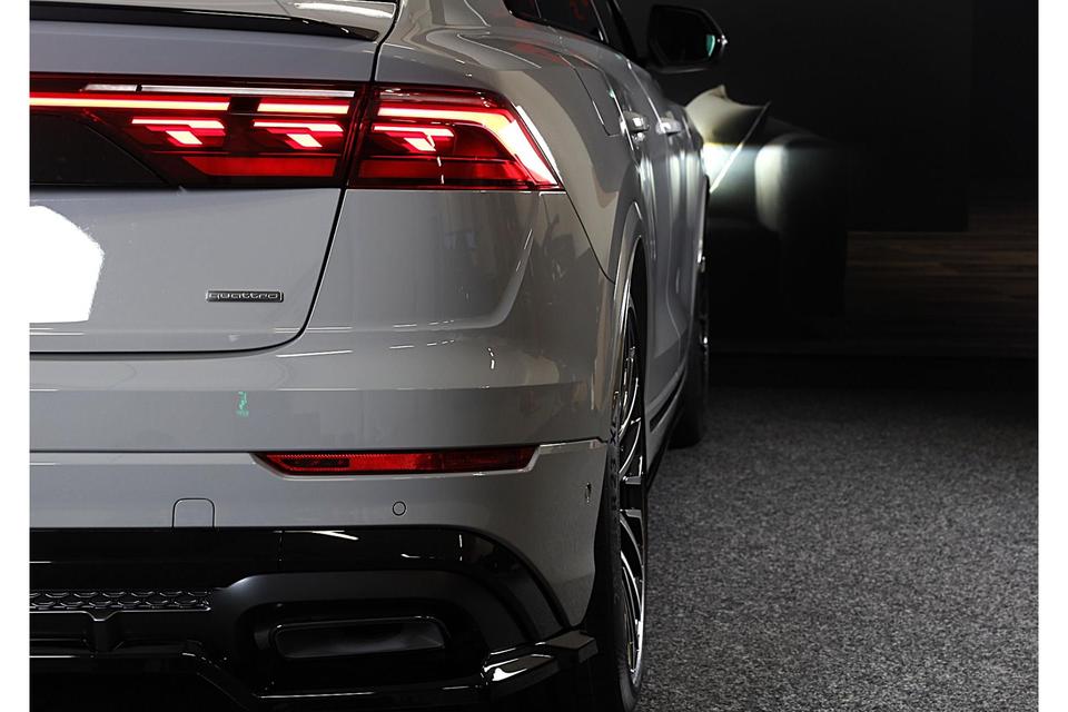 Met een auto als deze Audi Q8 komt u absoluut goed voor de dag. Geniet van de sportieve uitstraling en de fraaie details die de S line exterieur styling deze auto geeft. Een krachtige motor geeft deze auto zijn sportieve prestaties. Het lederen interieur geeft een puur luxegevoel. En ook aan optimaal gemak is gedacht: een elektrisch bediende glazen panorama dak en de elektrisch bedienbare achterklep. Is dat niet compleet? Hoe luxueus is het om tijdens de winter een verwarmde auto te hebben door de stuurverwarming, stoelverwarming met massagefunctie en verwarmbare achterbank. U past de stoelen moeiteloos aan, ze zijn elektrisch in te stellen en hebben bovendien een geheugen. Als autorijden zijdezacht kan zijn, dan is het hier zeker het geval: daar zorgen de de luchtvering en de ergonomische comfortstoelen voor. De elektrische kapbediening is een technisch hoogstandje: het dak opent en sluit zonder dat u hoeft uit te stappen. Perfect zicht bij nacht en slecht weer? Dat leveren de koplampen met matrix LED-verlichting. Bij de uitrusting van deze Audi horen onder meer 21 inch lichtmetalen velgen, sportonderstel, warmtewerend glas, trailer assistent, zwarte hemelbekleding en dakspoiler.