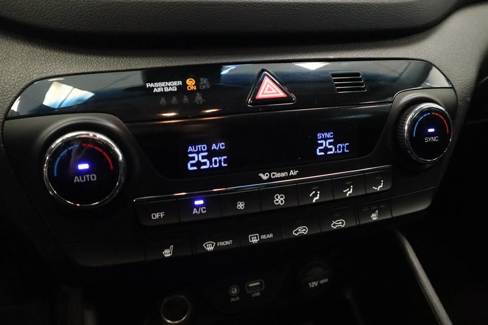 Geen nekkramp of spiegelwerk meer bij het achteruitrijden: de achteruitrijcamera kijkt en ziet alles! Met de routebegeleiding van het navigatiesysteem kunt u zich volledig op het verkeer concentreren. Aan boord van deze Hyundai Tucson is een achteropkomend verkeer waarschuwing voor extra veiligheid. Automatische airconditioning regelt volautomatisch de temperatuur. U kiest de gewenste temperatuur en het systeem doet de rest. Switchen van radiozender of het geluid dempen - het gaat gemakkelijk en veilig dankzij de audiobediening op het stuur. En dan is deze auto ook nog eens voorzien van DAB ontvangst, regensensor, cruise control, automatisch dimmende binnenspiegel, lederen stuur en lederen versnellingspook.