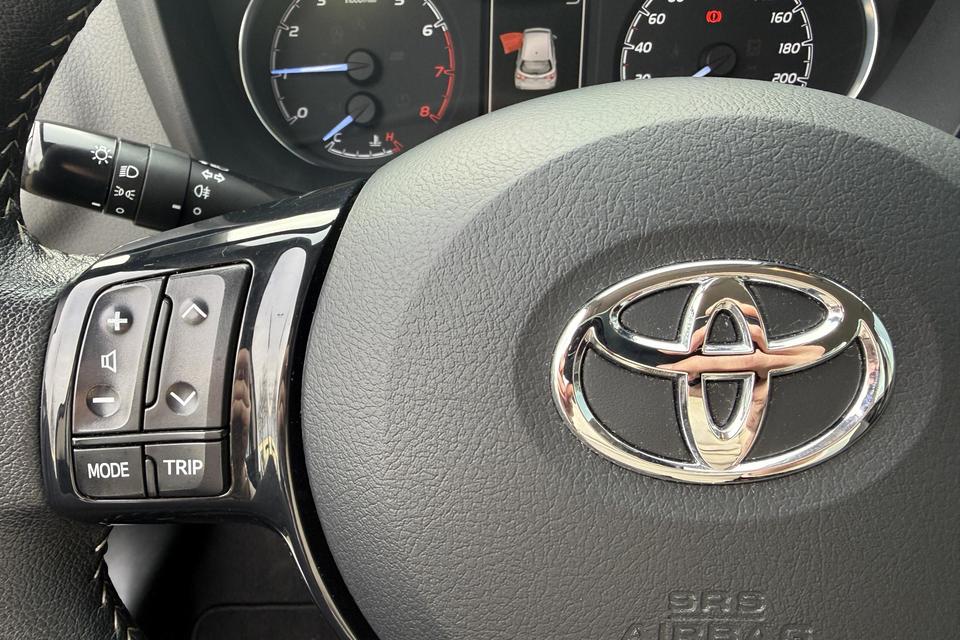 Alles vrij achter? De achteruitrijcamera laat het meteen zien. Audiosysteem en full map navigatiesysteem zijn gecombineerd. Zo wordt zelfs gesproken route-informatie een luisterervaring! En dankzij bluetooth klinkt uw favoriete playlist geweldig. De automatische airconditioning zorgt onder alle omstandigheden voor een prettige temperatuur. De regensensor in de voorruit schakelt de ruitenwissers automatisch in en uit. Meer rijcomfort en minder brandstofgebruik? Even de cruise control instellen en dan ontspannen rijden! Deze Toyota is voorzien van lederen stuur, centrale deurvergrendeling met afstandsbediening en lederen versnellingspook.